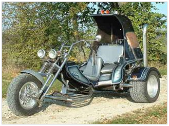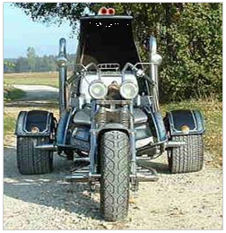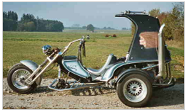 Die einen sprechen vom Trike mit Strandkorb oder Hundehütte, die anderen nennen es ganz einfach Kutsche. Tatsache ist, es handelt sich um ein CCS-Trike, Modell Roadliner aus der „Phoenix“-Serie. Hergestellt wurden unter der Regie von W. Simon, später G. Wildmoser und F. Geisenhofer, etwa 5 bis 7 Stück. - Also schon eine kleine Besonderheit für uns, so ein seltenes Teil zu besitzen! Sobald es Zeit und Wetter erlauben, tauschen wir unsere Büroklamotten gegen das Lederoutfit für einen Trikeride. |