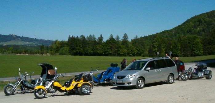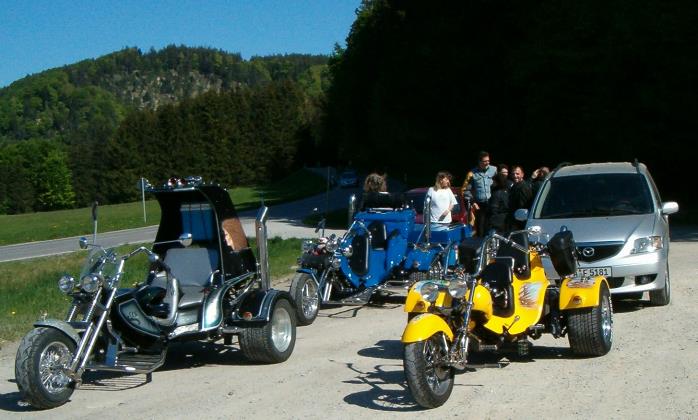 Zum Abschluss des Tagesausflugs gesellten sich noch Joe und Sylvia mit ihrem Boom Trike zu uns, hier mit Pause an der Schnaidberg Alm.