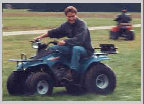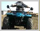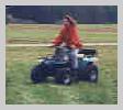 Nach dem Essen war erst mal ein kleines Ruhepäuschen nötig, um das in den Magen gepumpte Blut in die Denkfabrik zurückfließen zu lassen. Entsprechend maulfaul waren wir alle. Jetzt kam der Höhepunkt: die eisernen Triker Hans-Jürgen und Florian, sowie der Moppeddriver Christopher wurden aufgefordert, sich mit der Fahrphysik eines Quads anzufreunden. Etwas ungewohnt war es am Anfang schon, aber gestandene Kerle wie uns haut ja nichts um. Und so hoppelten wir über den Acker und die Wiese. Herr Sperber schoss wie sein Namensvetter raubvogelartig im Tiefflug über die Wege, riesige Staubwolken hinter sich herziehend.