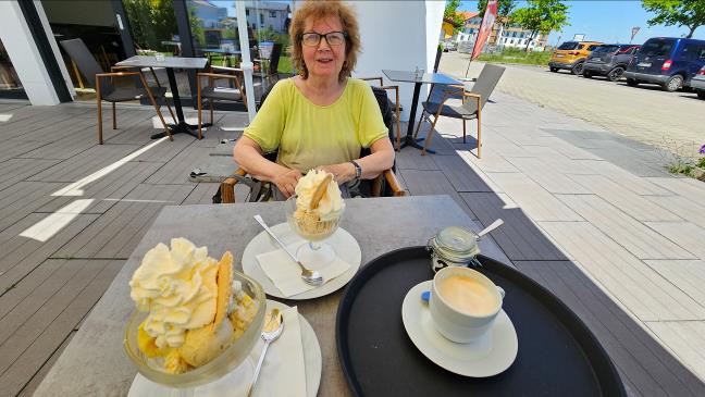So ist es recht, herrliches Wetter und unsere bekannte Cappuccino + Eis mit Sahne Diät!