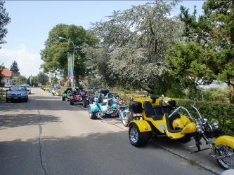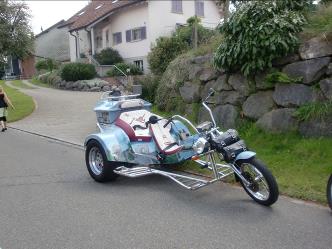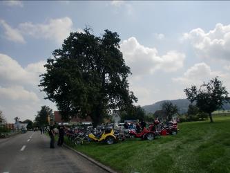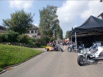 Ausgerichtet bzw. organisiert wurde das Treffen wie üblich von Jörg Guggenbühl (trike-events.ch) und seiner Mannschaft. Dass die alle zwei Jahre stattfindende Kombination Dorffest Chilbi mit Triketreffen in Algetshausen weit übers Land hinaus bekannt ist, zeigten die vielen Multikulti-Kennzeichen. Bis von Polen / Tschechien, Spanien und Belgien waren die Leute gekommen. Eine willkommene Gelegenheit, die Bevölkerung und die Lederrowdys samt ihren Fahrzeugen auf sanfte Art näher zu bringen. |