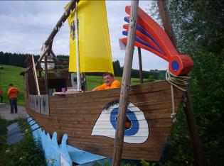 Zusammen mit dem Faschingswagenverein Hopferbach Mitanand, Freunden und Familienmitgliedern stellten die Trike-Vagabunden ein klasse Fest auf die Beine. In den umliegenden Quartieren und auf dem Campingplatz fand jeder eine Unterkunft. Der Shuttle-Service funktionierte reibungslos. Begrüßt wurde man mit einem Stamperl und als Zuckerl für die Anmeldung gab es noch eine Trike-Vagabunden-Anstecknadel. Die 3 Euro Eintritt waren als kleiner Unkostenbeitrag gedacht. |