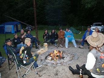 Reinhold hatte extra einen großen Grill gebaut, ansonsten waren Barzelt, Lagerfeuer und offene Hütte beliebte Treffpunke für Quasseln und Fachsimpeleien. |