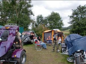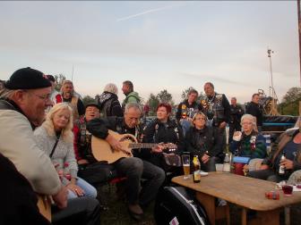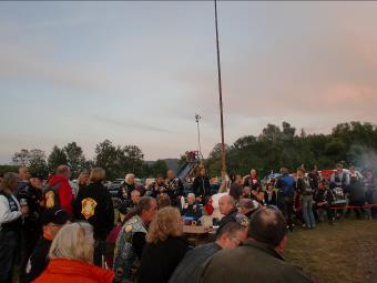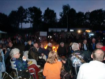 Abends konnte man sich am Lagerfeuer beim geselligen Beisammensitzen erwärmen, und bei der Lagerfeuer-Party mit Musikeinlagen von Clapton, Breitscheitel, Hoss, Anne und dem Old-Triker Schnee wurden einige zum Mitsingen animiert.