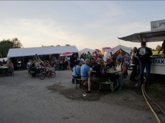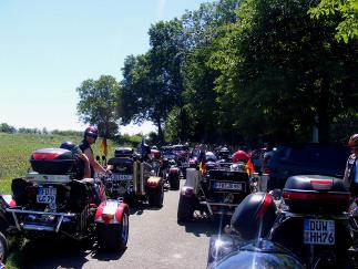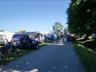 Programm: Mittwoch und Donnerstag gab es die ersten Anreisen mit den üblichen Begrüßungszeremonien. Es herrschte sofort „Bombenstimmung“ auf dem Platz. Am Donnerstagnachmittag wurde eine geführte Trikeausfahrt angeboten und abends spielte die Rockband „City Hogs“. Ein Ende war nicht abzusehen! |