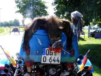Die Wildsau-Triker Ortenau luden vom 3. bis 6. Juni 2010 auf dem Sportplatzareal des FV Langenwinkel in Lahr zu ihrem 4. Treffen ein. Güny mit Crew, der DRK OV Offenburg und Sponsoren waren für Organisation, Essen und Getränke verantwortlich. Registriert wurden 101 Trikeanmel-dungen und ca. 40 Tagesgäste aus Frankreich, der Schweiz und Deutschland. Die Bevölkerung aus dem Umkreis ließ sich dieses Schauspiel natürlich ebenfalls nicht entgehen. |