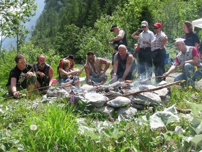 Gelungen war die große Freitagsausfahrt nach St. Martin im Calfeisental, wo auf uns eine leckere Grillsession wartete. Salat und Getränke standen schon gekühlt im kalten Wasser und die extra präparierten Hölzer zum Aufspießen der Würstl und Steaks lagen am Lagerfeuer zum „Do-it-yourself“-Grillen parat. Später gab es noch Kaffee und Kuchen. |